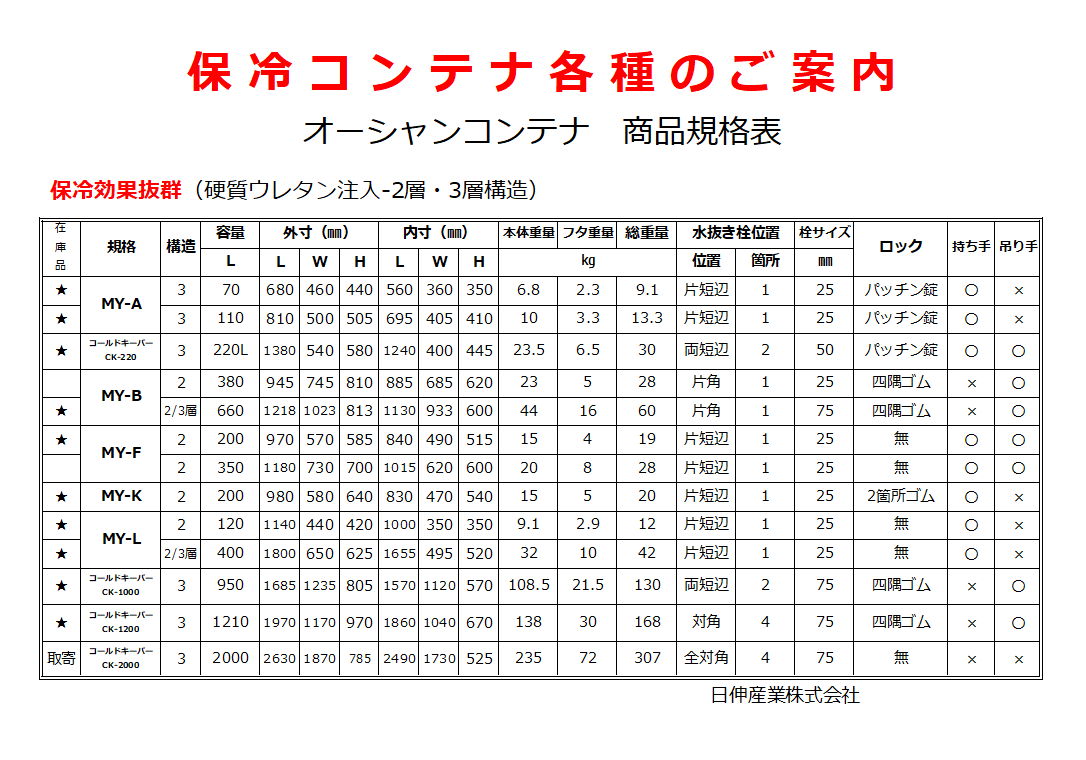 大型保冷コンテナは、主に魚の養殖業や市場などへ、鮮度維持や運搬を目的として利用されている商品です。